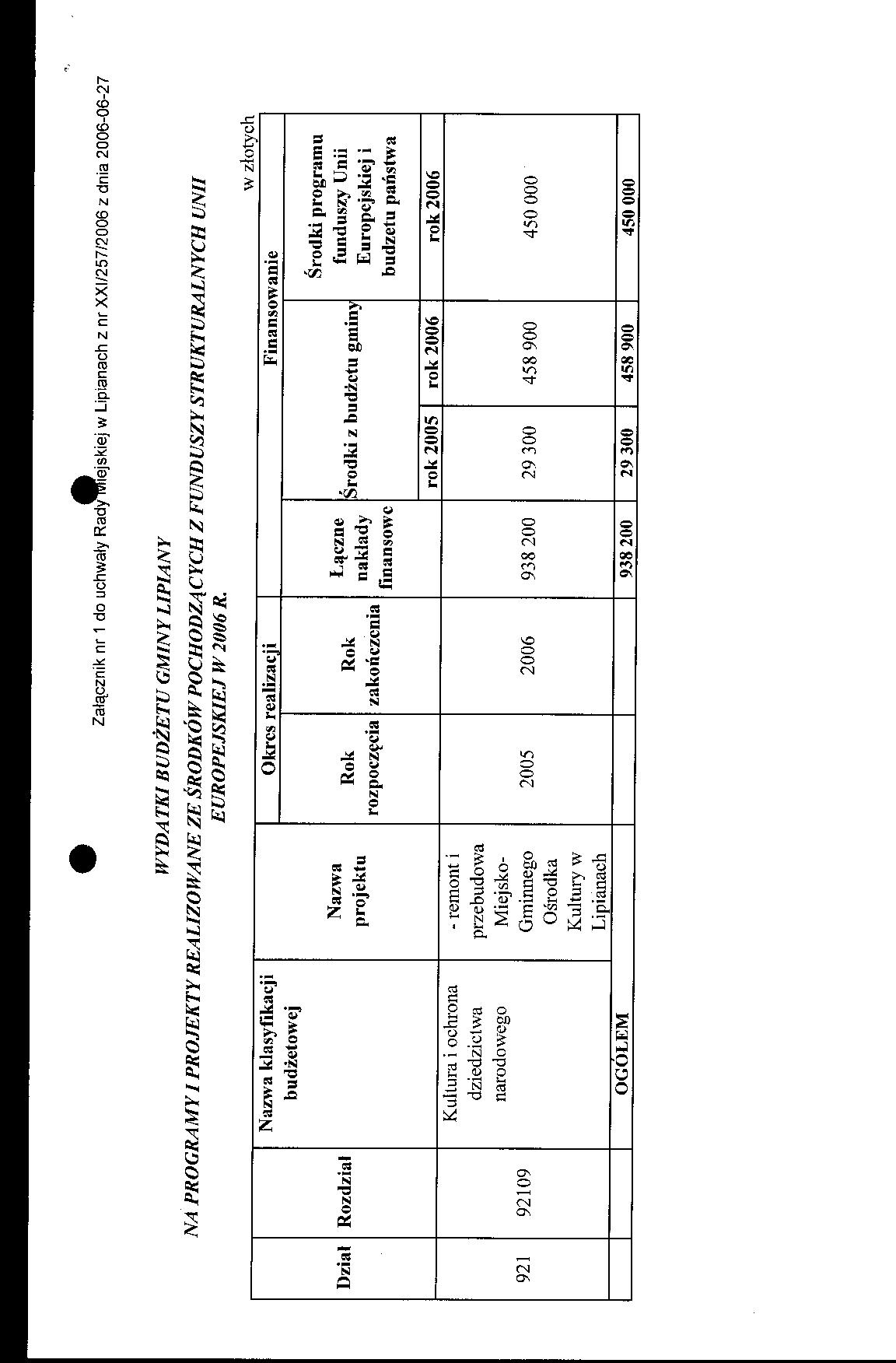 Uchwała Nr XXXI/257/2006 w sprawie zmian budżetu gminy Lipiany na rok 2006