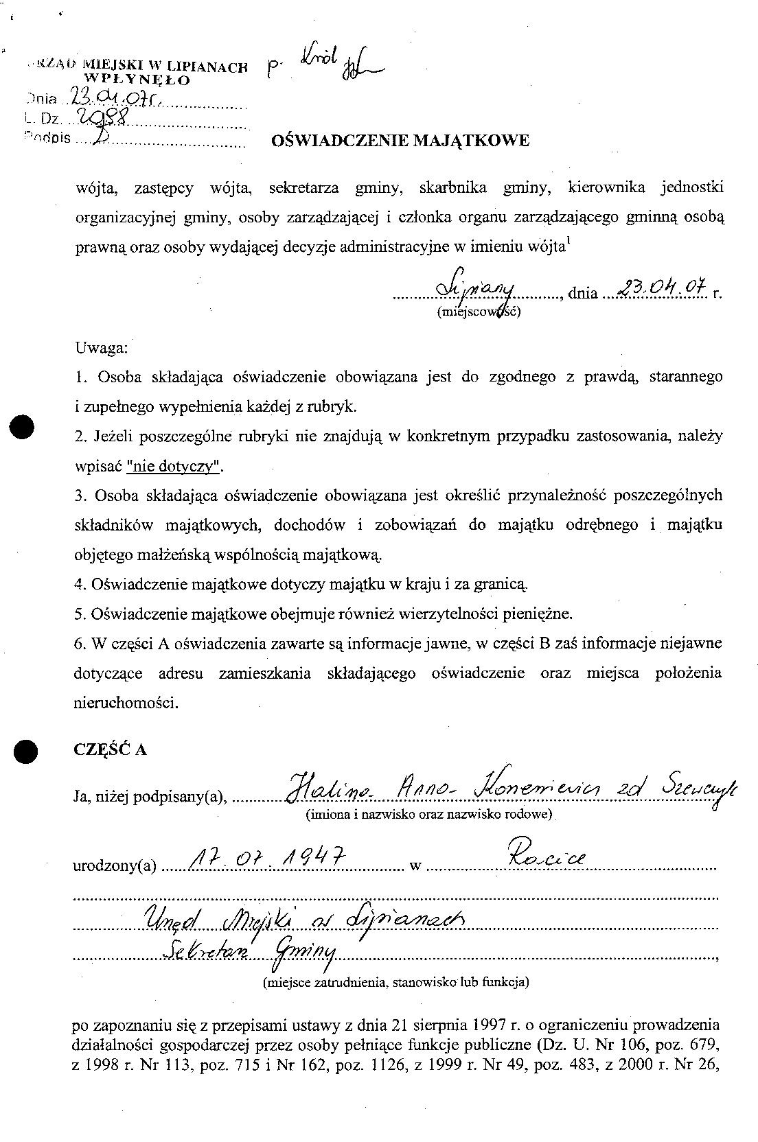 | Osoba, która wytworzyła informację lub odpowiada za treść informacji: | Agnieszka Kosiorek | 15-05-2007 |