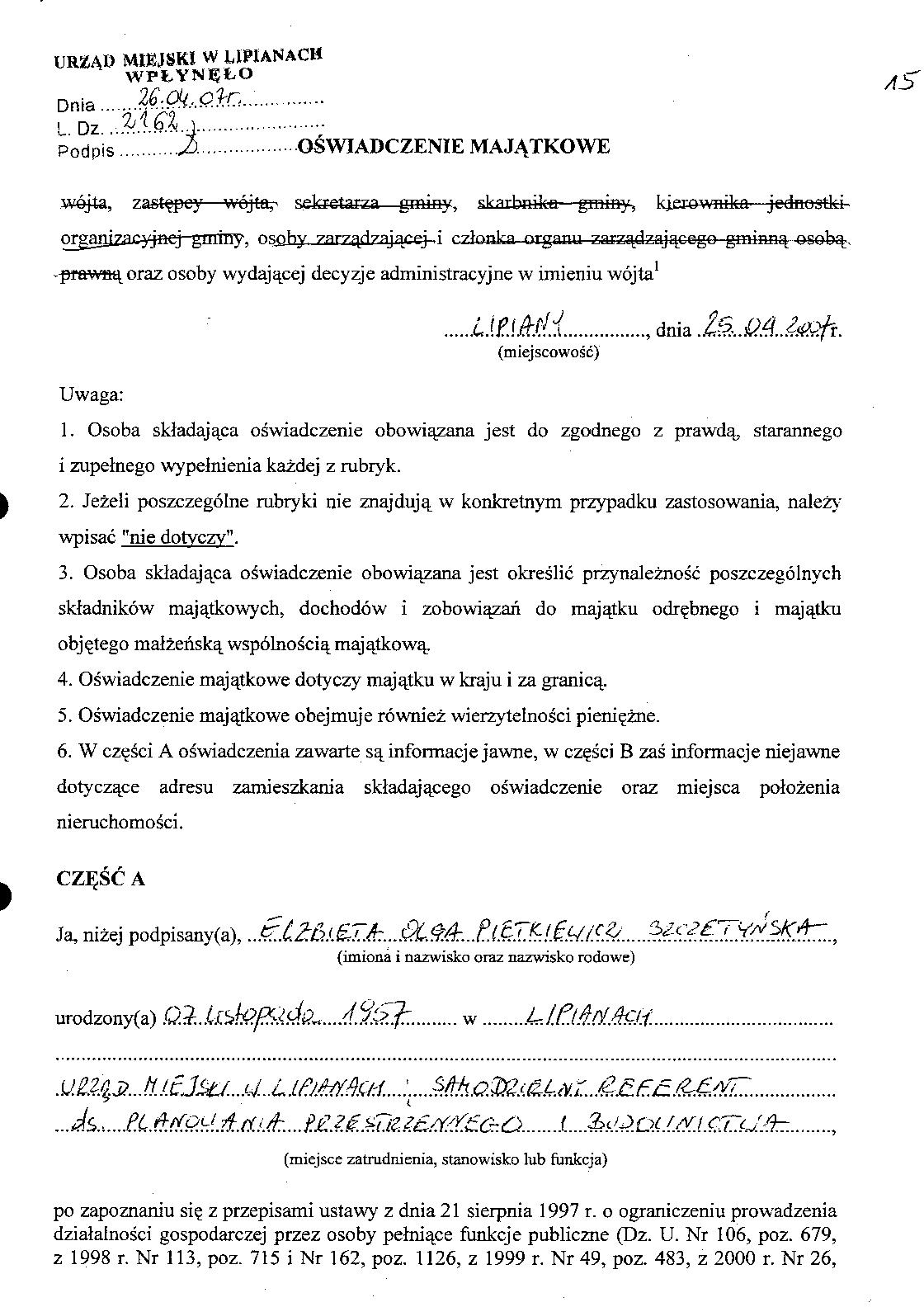 | Osoba, która wytworzyła informację lub odpowiada za treść informacji: | Agnieszka Kosiorek | 15-05-2007 |