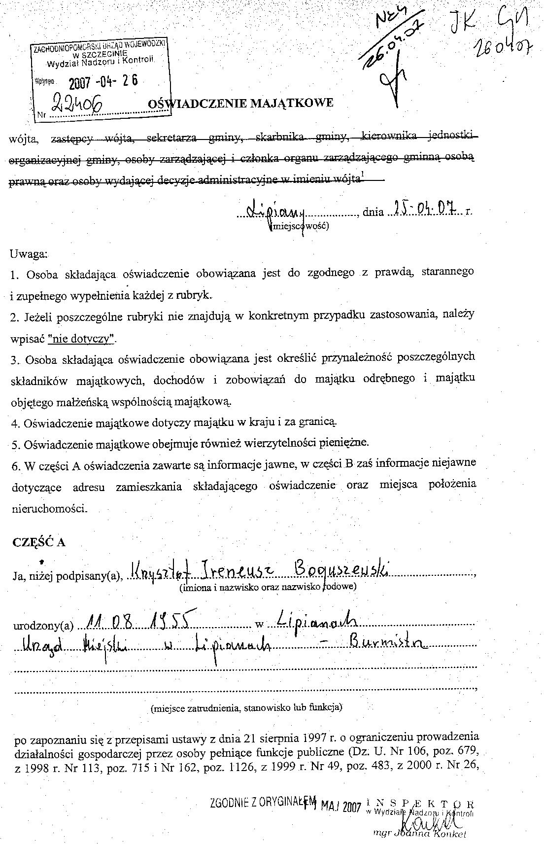 | Osoba, która wytworzyła informację lub odpowiada za treść informacji: | Agnieszka Kosiorek | 16-05-2007 |