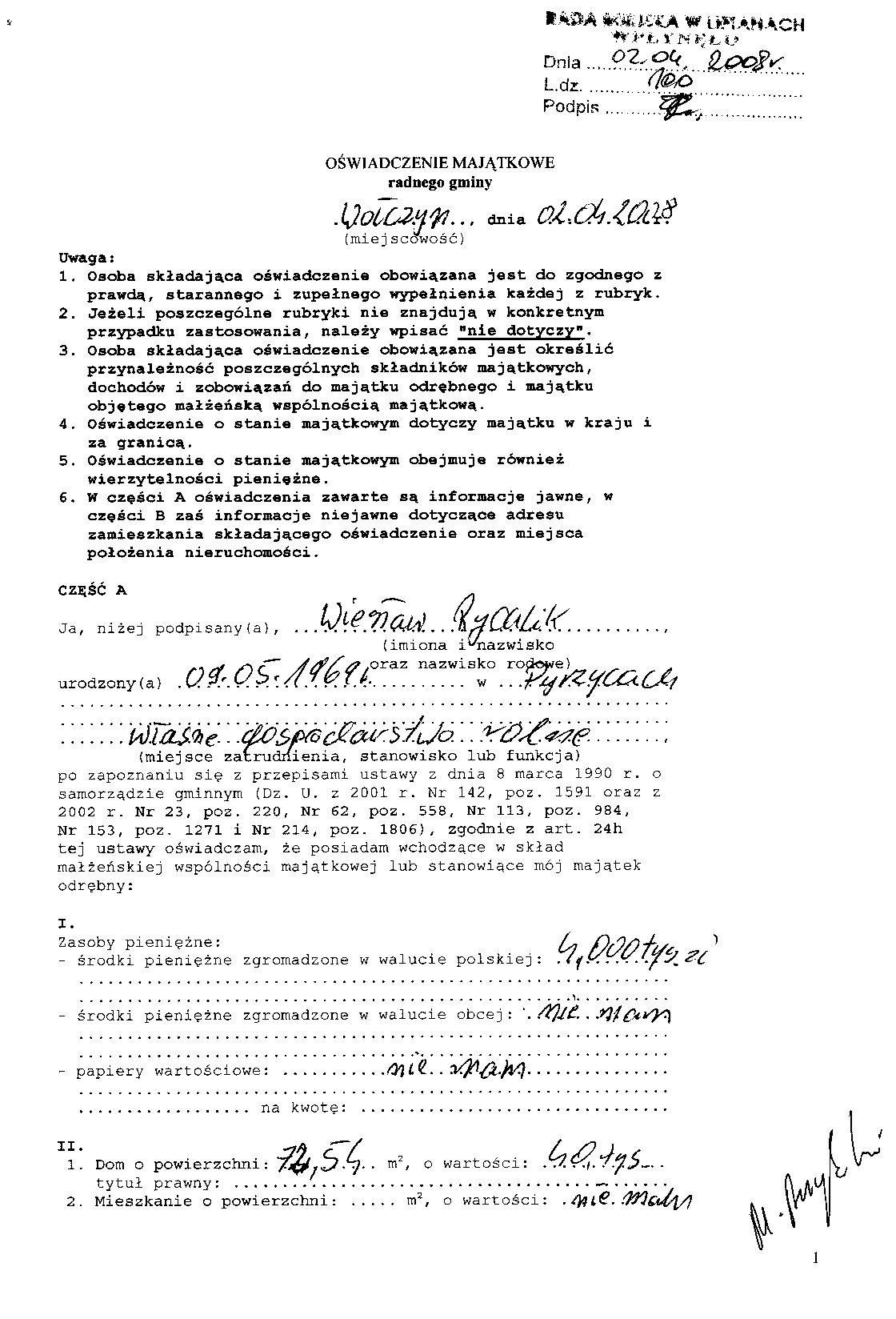 Rychlik Wiesław - Radny Rady Miejskiej