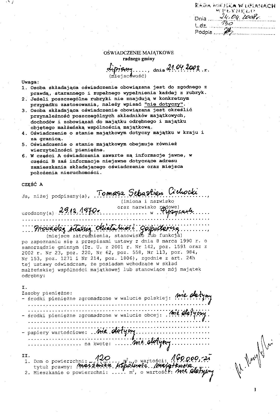 Cichocki Tomasz Sebastain - Radny Rady Miejskiej