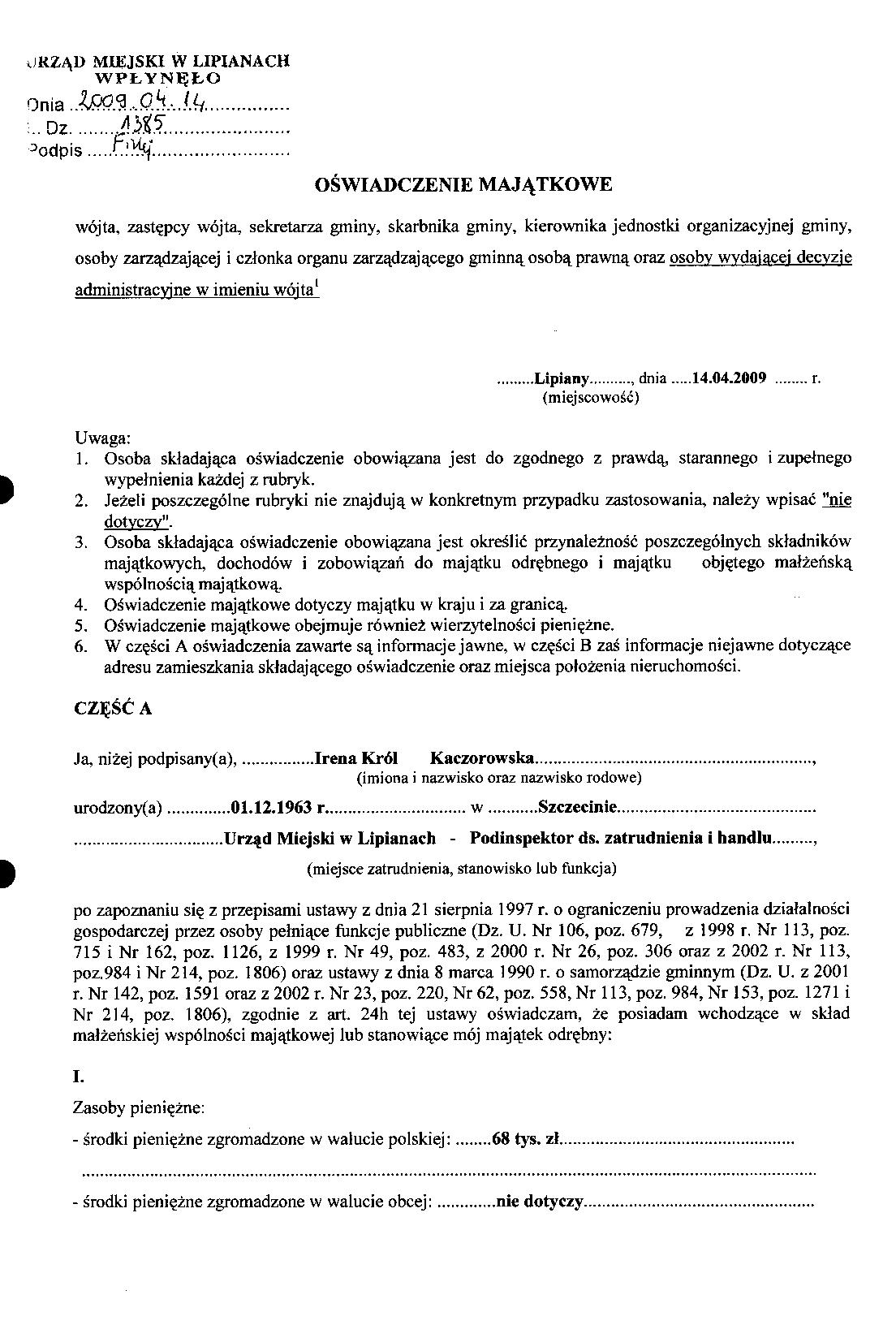 | Osoba, która wytworzyła informację lub odpowiada za treść informacji: | Agnieszka Kosiorek | 02-06-2009 |