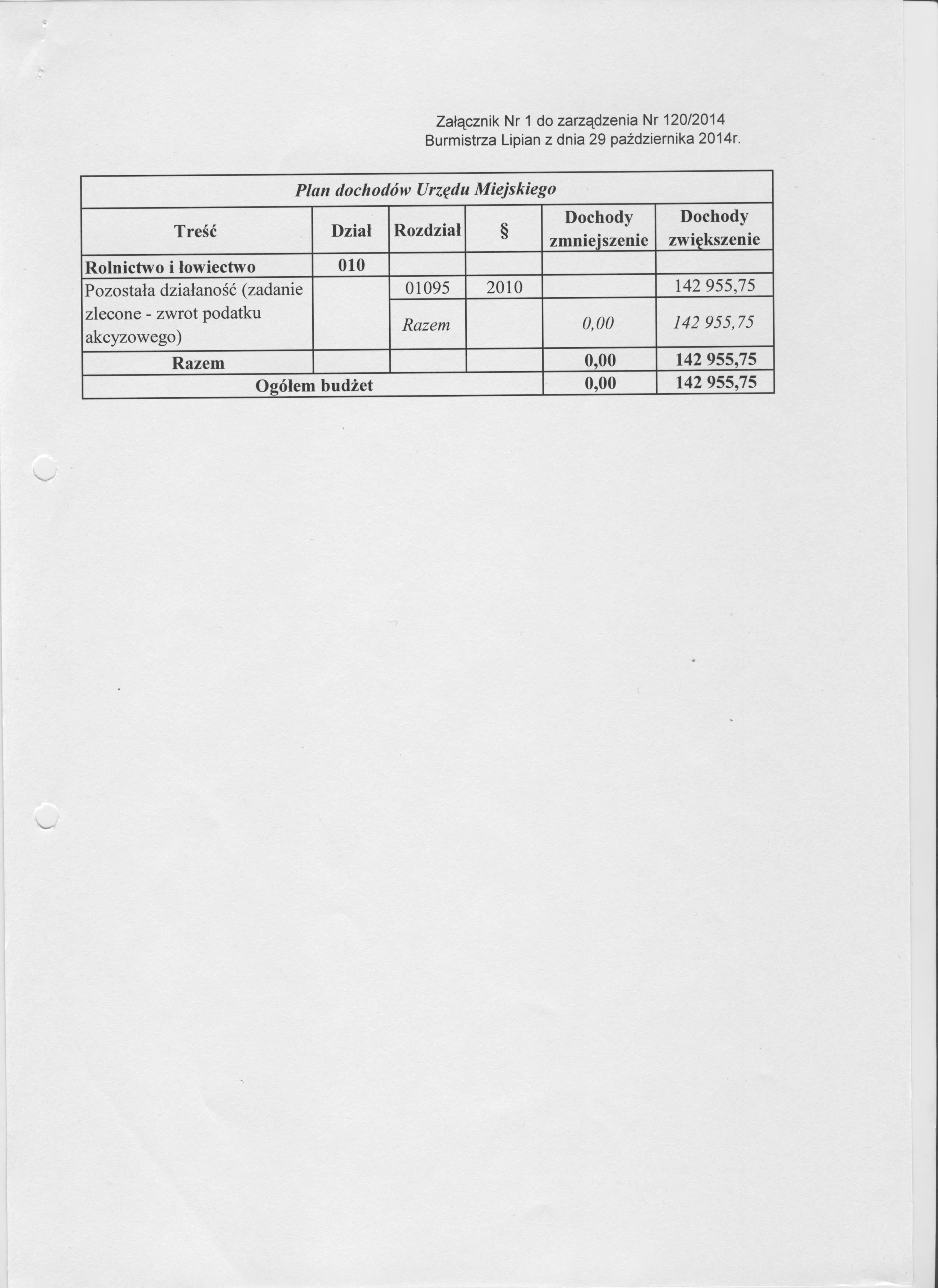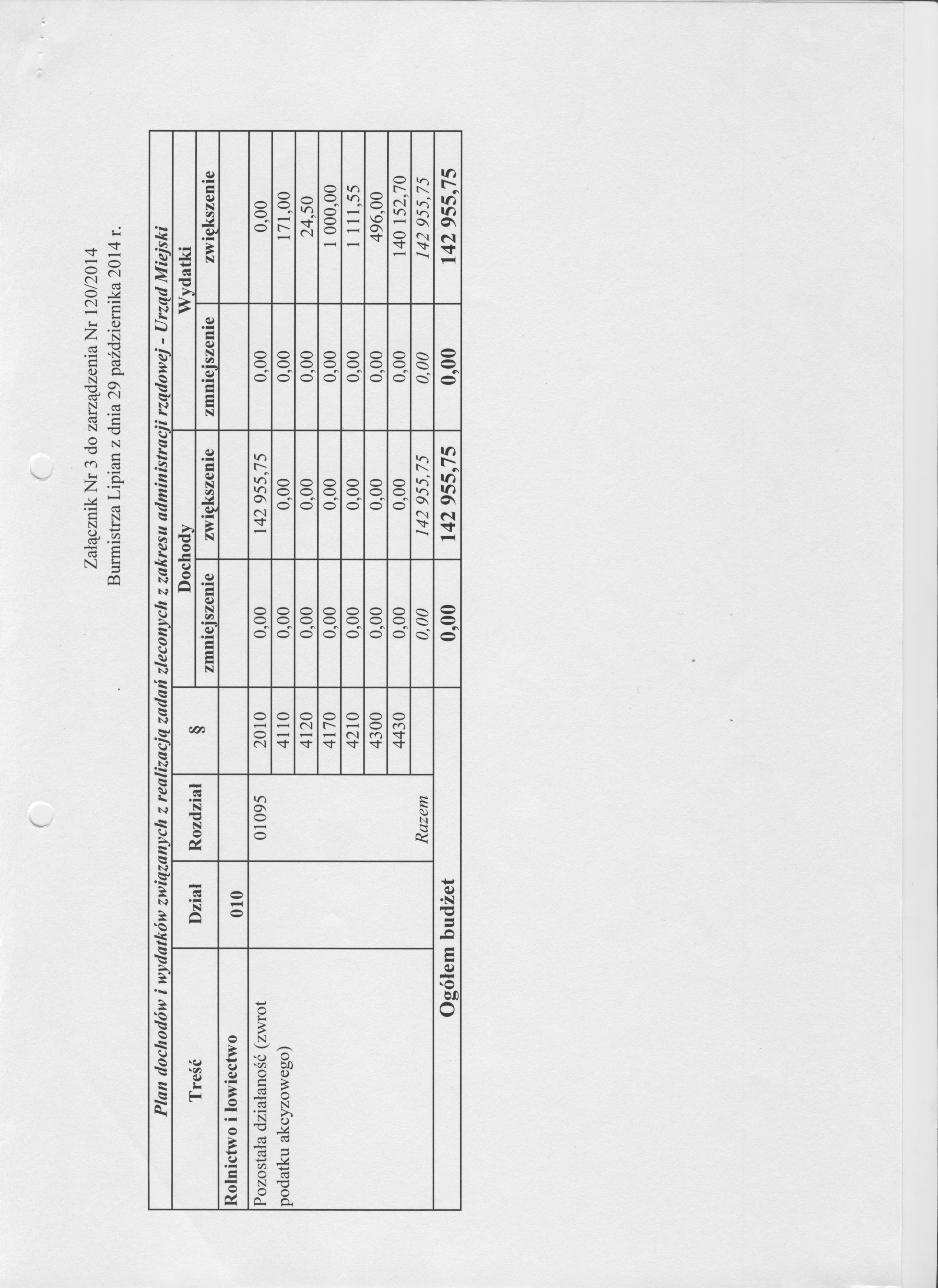 Zarządzenie Nr 120/2014 Burmistrza Lipian z dnia 29 października 2014r. w sprawie zmian budżetu i w budżecie Gminy Lipiany na rok 2014