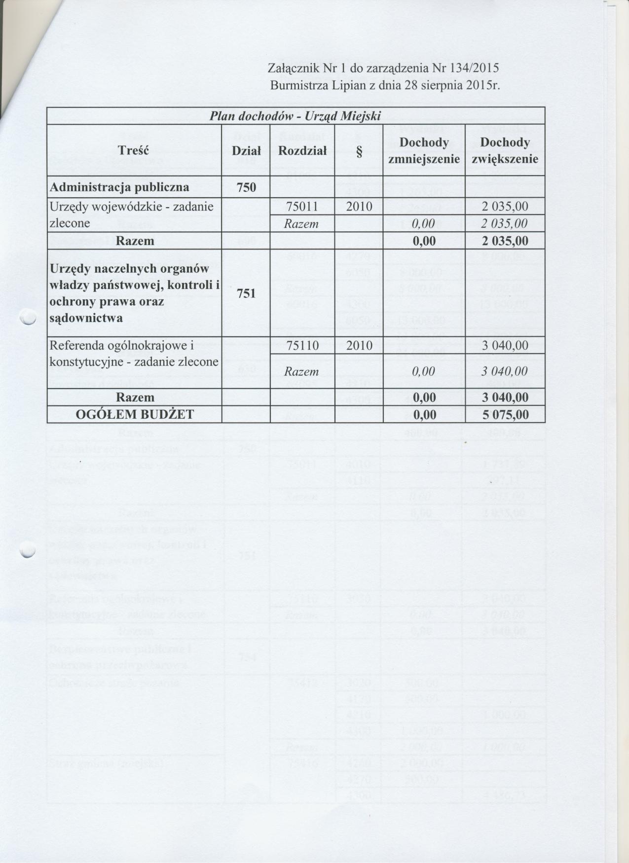 Zarządzenie Nr 134/2015 Burmistrza Lipian z dnia 28 sierpnia 2015 r. w sprawie zmian budżetu i w budżecie Gminy Lipiany na rok 2015