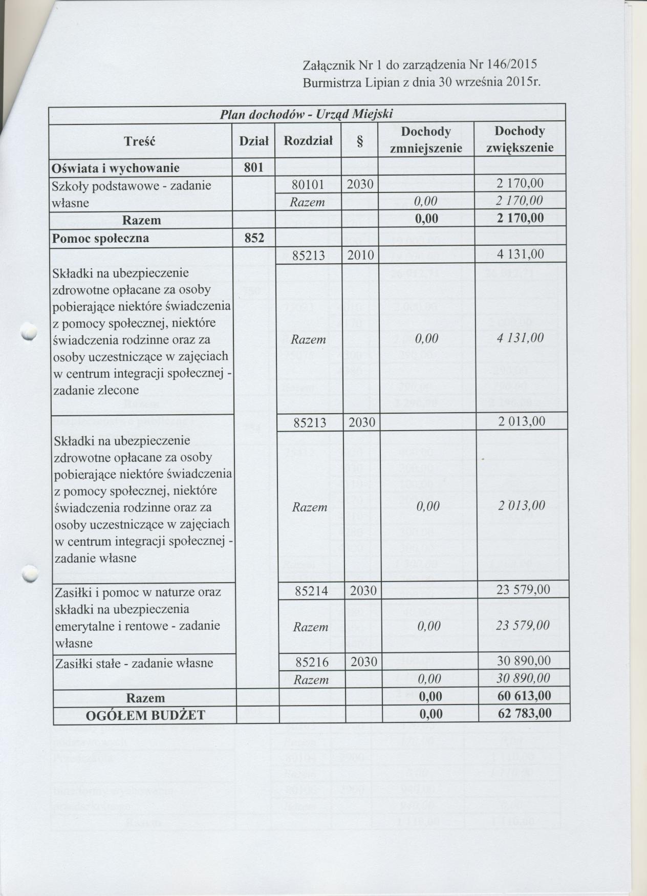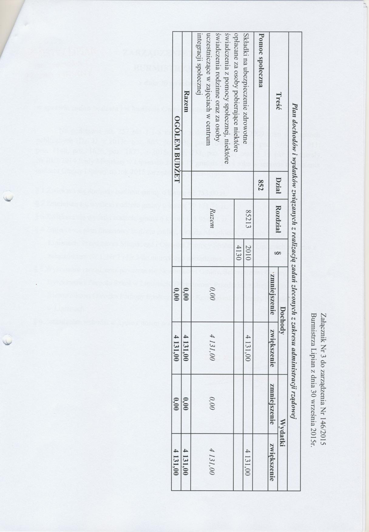 Zarządzanie Nr 146/2015 Burmistrza Lipian z dnia 30 września 2015 r. w sprawie zmian budżetu i w budżecie Gminy Lipiany na rok 2015
