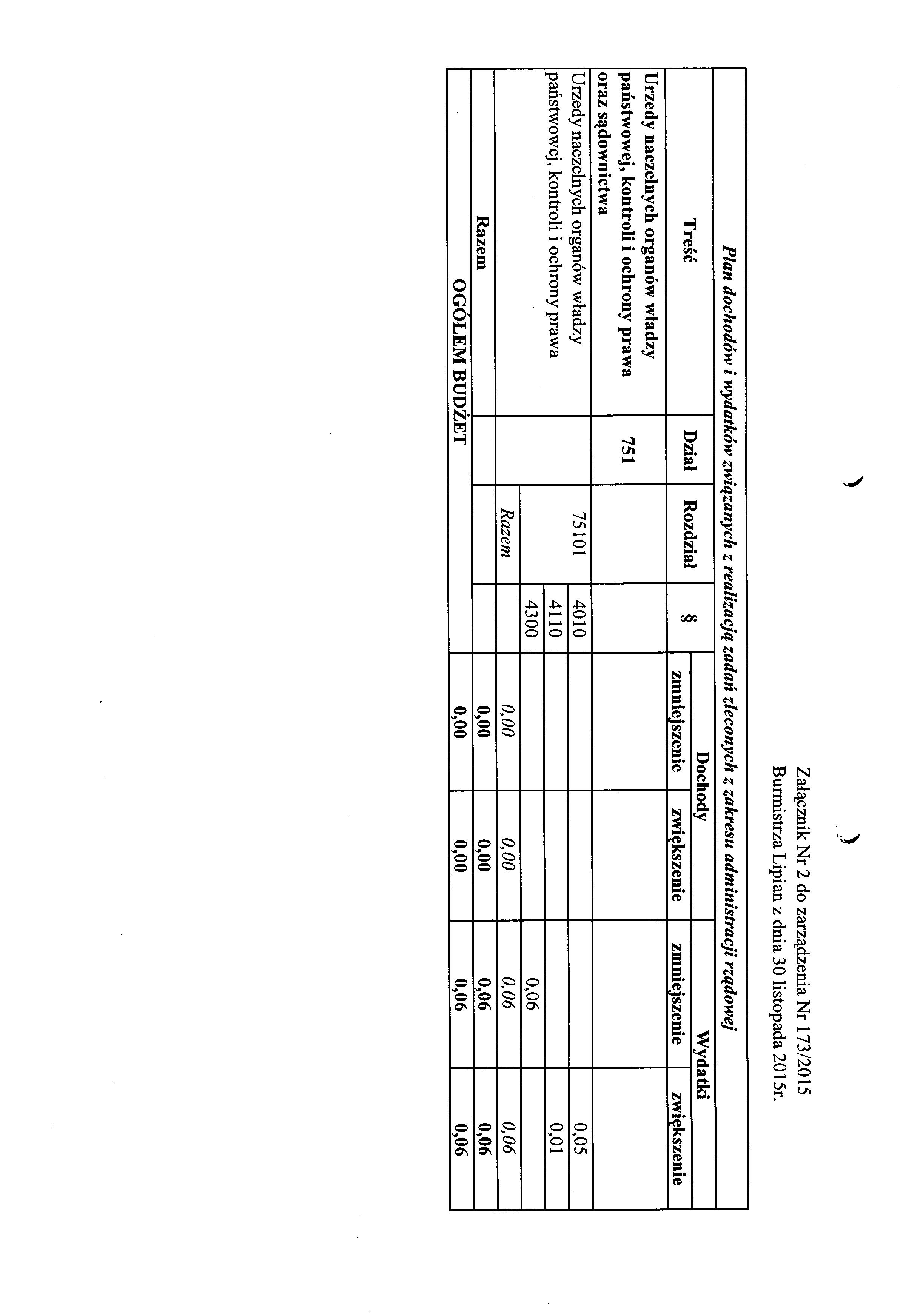 Zarządzenie Nr 173/2015 Burmistrza Lipian z dnia 30 listopada 2015 r. w sprawie zmian w budżecie Gminy Lipiany na rok 2015